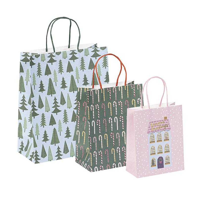Pour celles et ceux qui préfèrent une solution rapide et décorative, Viquel propose des sacs en kraft aux motifs de Noël. Disponibles en trois formats, ils s’adaptent à tous les types de surprises — et garantissent un emballage esthétique en quelques secondes.