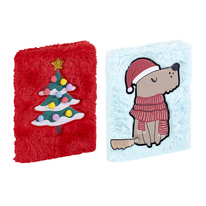 Douceur, texture réconfortante et esprit hivernal : ces carnets en peluche se déclinent en deux visuels, un rouge décoré d’un sapin et un bleu agrémenté d’un petit chien. Parfaits pour que les enfants notent leurs envies, dessins ou messages à offrir.