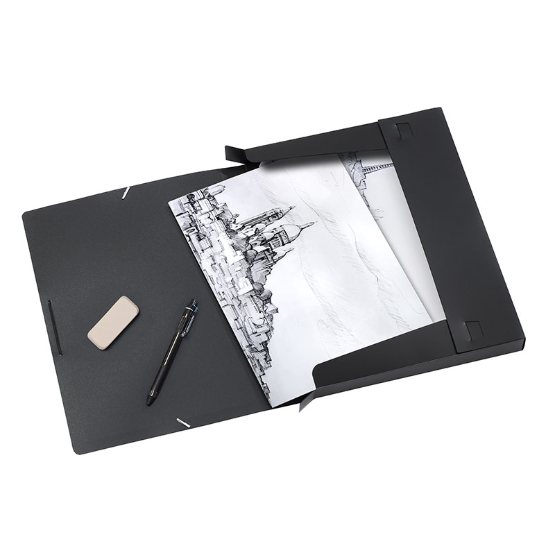 Fabriquée en plastique résistant, elle offre une capacité de stockage confortable grâce à sa tranche de 3 cm, idéale pour conserver dessins, croquis et projets au format A4 et 24 × 32 cm.
