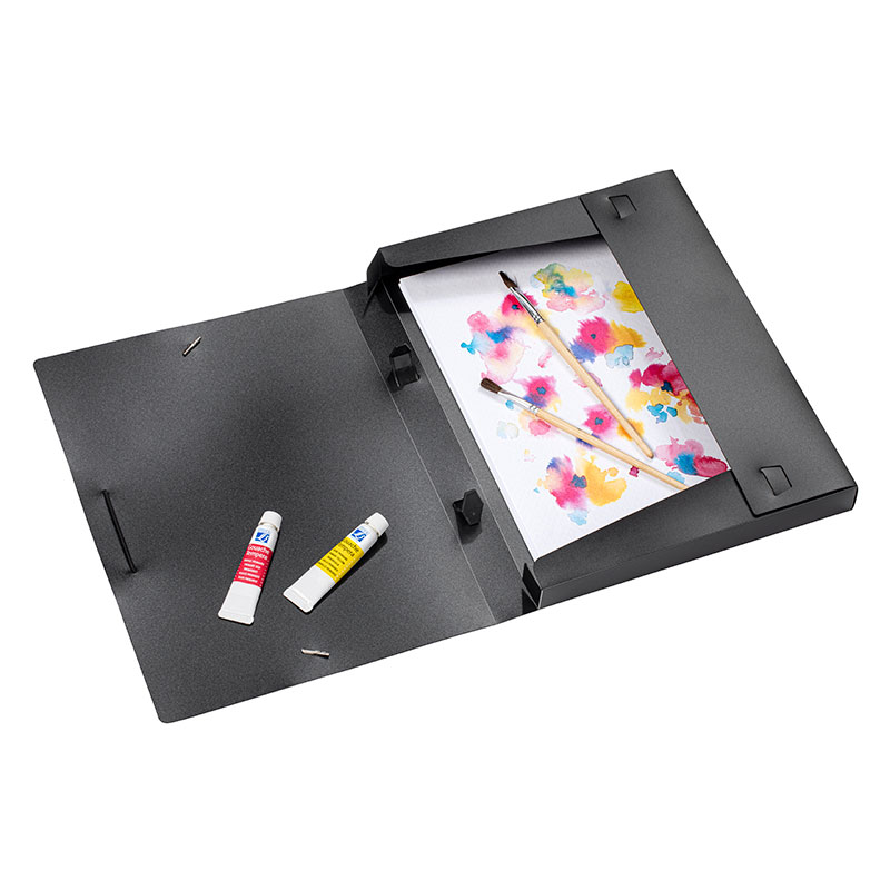 Conçue en polypropylène robuste, elle permet de ranger facilement des documents et œuvres jusqu’au format A4.