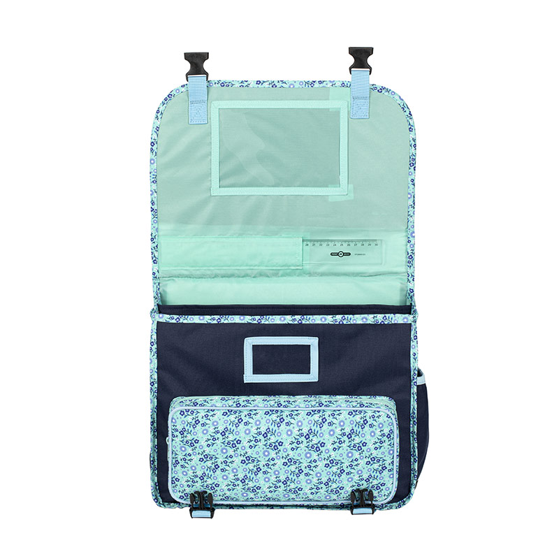 Des éléments pratiques sont présents à l’intérieur de ce cartable : porte-règle, porte-emploi du temps et compartiment pour étiquette nom.