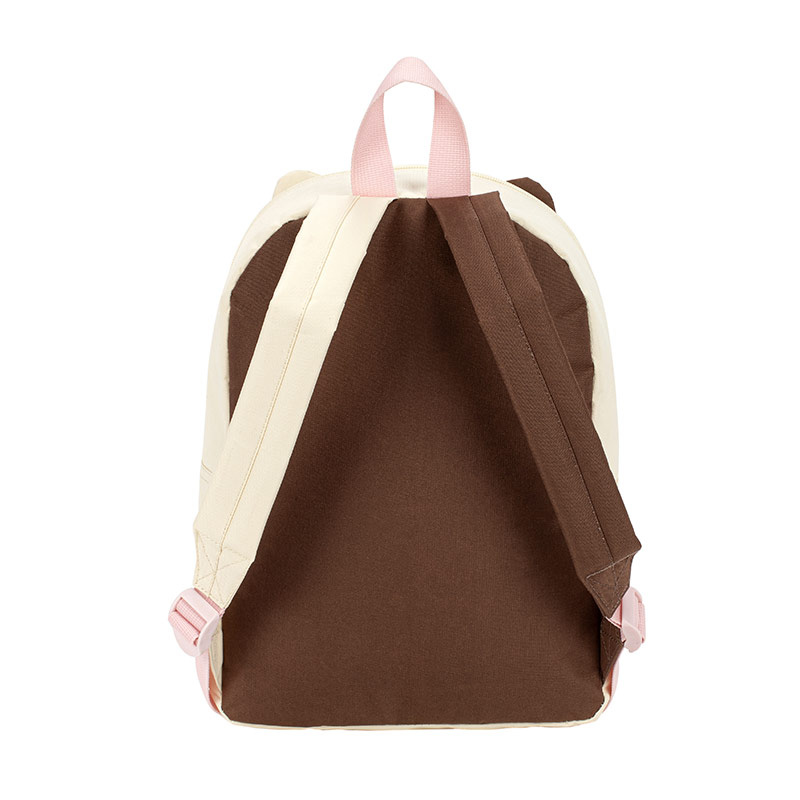 Ce sac à dos mesure 23 x 33 x 11 cm et est en matière polyester 300 deniers beige et marron.