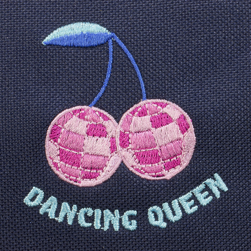 Le premier compartiment est décoré de patchs brodés aux motifs « Girl Power », apportant une touche tendance et dynamique.