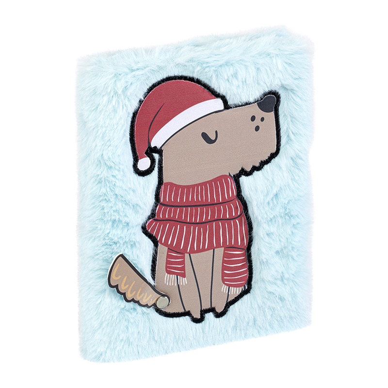 – Bleu avec chien : couverture en peluche bleue avec motif chien brodé et queue mobile