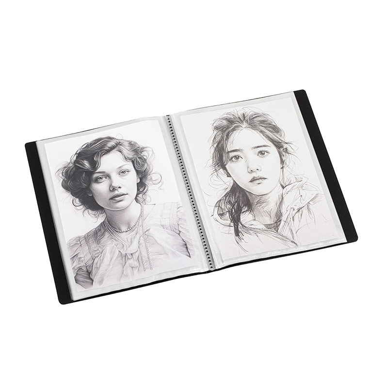 Il est équipé de 30 pochettes de qualité supérieure, offrant 60 vues, idéales pour présenter et conserver dessins, croquis et travaux artistiques.